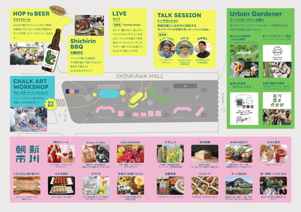 「アーバンファーミングデイ」では、いろいろなイベントやトークセッション、子供たちも楽しめるチョークアートやワークショップなどが開催されたほか、地域の方々が育てたホップで作ったクラフトビールが飲めたり、七輪焼きも楽しめたりと、幅広い世代の方々が楽しめる内容になっていました。
