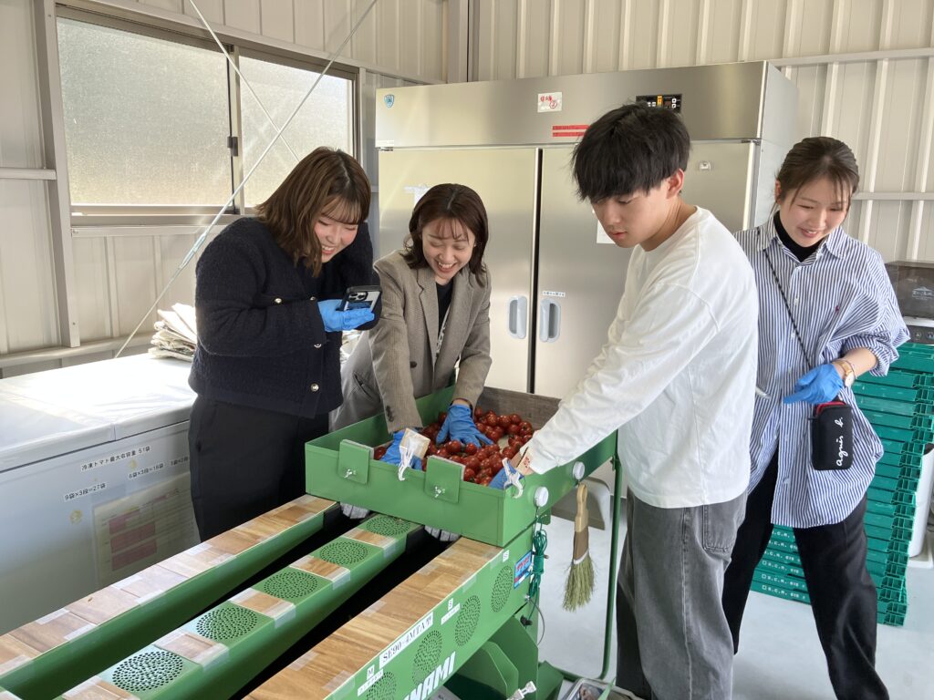 圃場の視察、収穫体験、選果体験、生産者インタビューというメニューにて対応致しました🍅